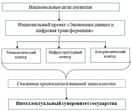 Цель исследования заключается в выявлении институциональной роли национального проекта «Экономика данных и цифровая трансформация государства» в формировании интеллектуального суверенитета Российской Федерации.